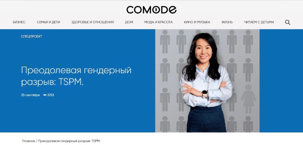 Ең жарқын үлгілердің бірі TSPM. әкімшілік мәселелері және персоналмен жұмыс істеу жөніндегі бөлімшенің басшысы Диана Мусульманкулова болып табылады. Жақында әйелдерге арналған Comode.kz әйгілі интернет-платформасында Диананың интервьюі шықты, онда ол мынадай маңызды тақырыптар қозғалған: