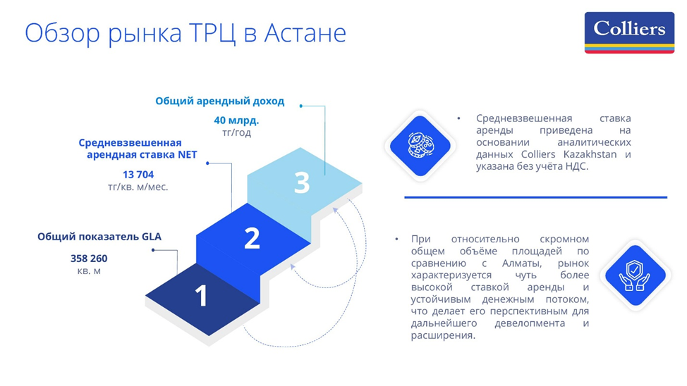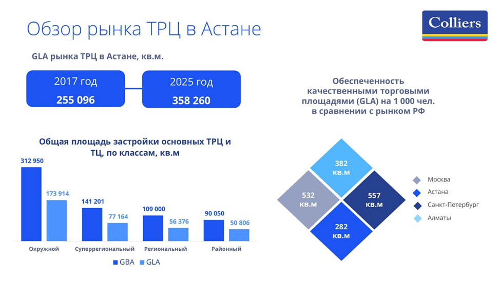 Colliers Kazakhstan аналитикасына сәйкес, Астананың сауда жылжымайтын мүлік нарығы ұсыныстың кеңеюі және форматтардың әртараптандырылуы есебінен дамуын жалғастырып келеді.