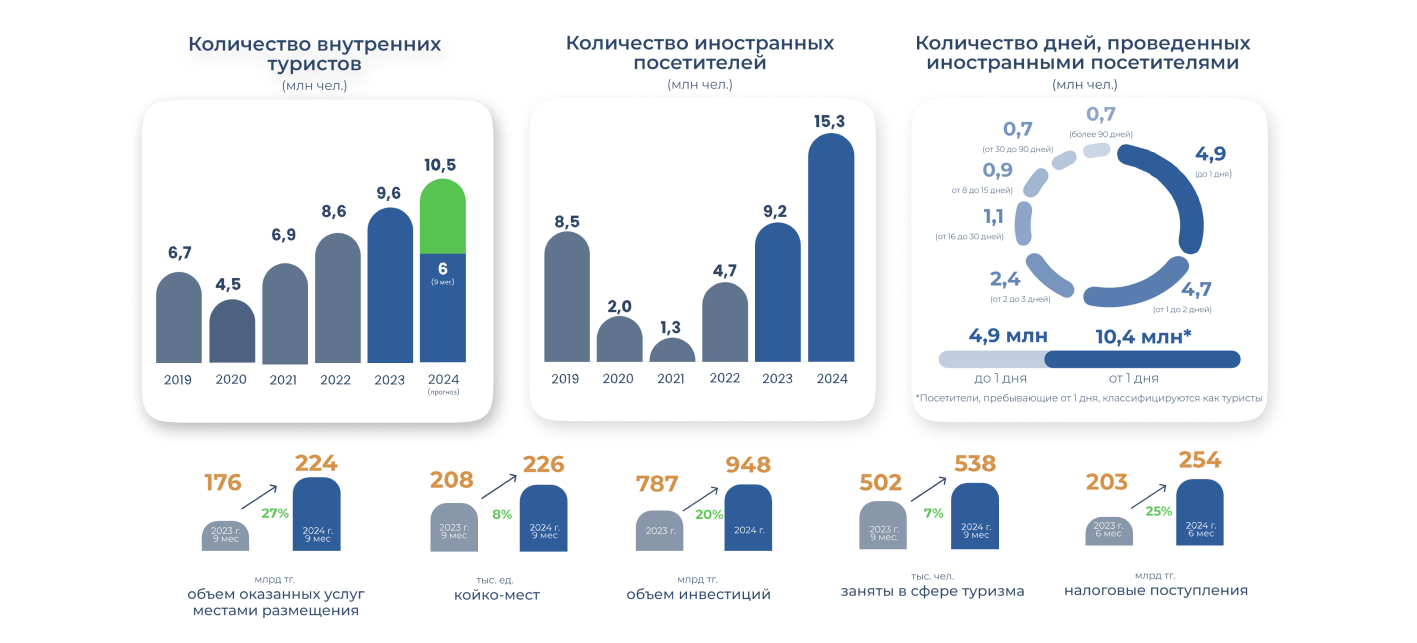 В 2025 году Казахстан будет активно представлен на международных выставках, таких как ITB Berlin, ATM Dubai и ITB China, а также на 20 других мероприятиях, что обеспечит дополнительный интерес к стране как туристическому направлению. Таким образом, Казахстан уверенно развивается как туристическое направление, активно внедряя новые технологии и улучшая инфраструктуру для привлечения иностранных гостей.