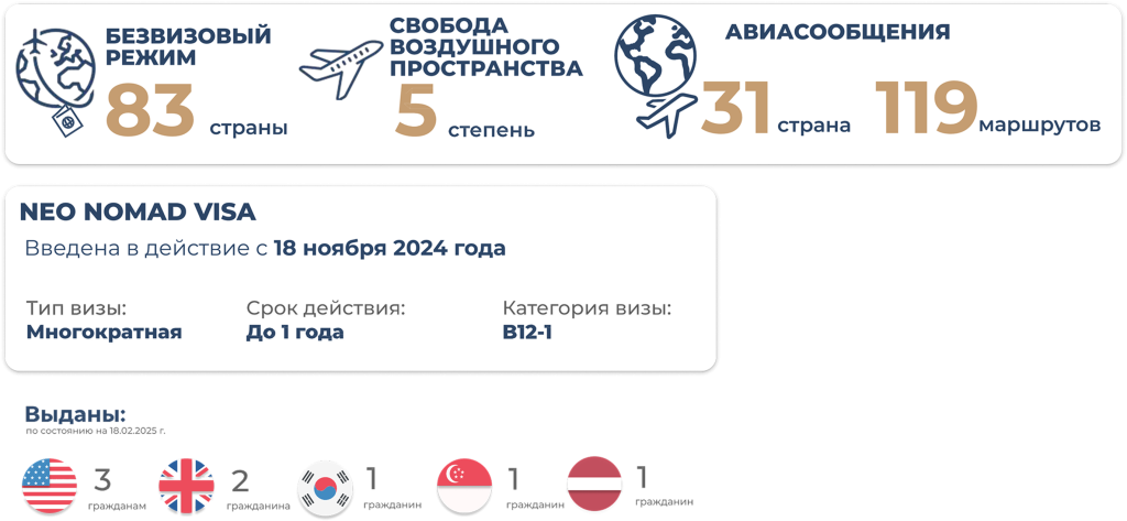 Рост числа иностранных туристов обусловлен открытостью страны: Казахстан предоставляет безвизовый режим для граждан 83 стран и активно развивает прямое авиасообщение с 31 страной. Важным шагом стало внедрение визы Neo Nomad, которая позволяет удалённым работникам находиться в Казахстане до одного года. Эта инициатива уже привлекла цифровых кочевников из разных стран, включая США и Великобританию.