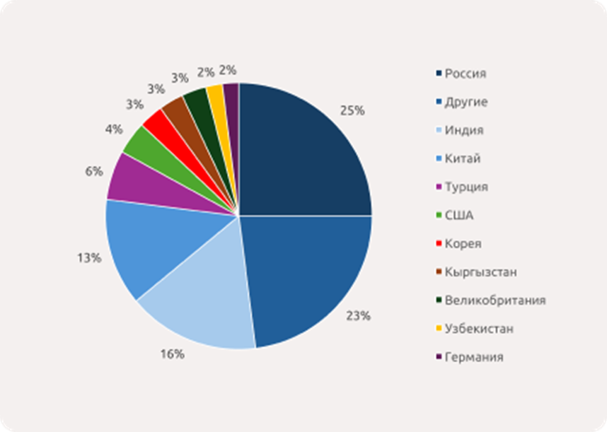 Основные страны, из которых Алматы принимает наибольшее количество международных туристов, — это Россия, Индия и Китай. В совокупности туристы из этих трех стран составляют 54% от общего числа международных туристов, посещающих Алматы. Четвертое место в списке за 2023 год занимает Турция, однако доля посетителей из Турции (6%) значительно меньше доли каждой из стран, входящих в тройку лидеров. Также стоит отметить, что две страны, из которых Алматы принимает наибольшее количество международных туристов, имеют общую границу с Казахстаном.