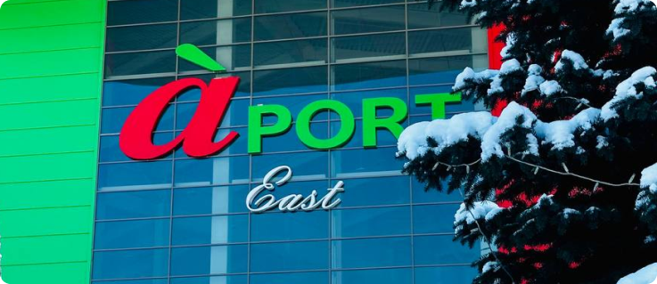 Молл "Aport East"открыл свои двери в Алматы 21 октября 2023 года с 85% открытыми арендаторами и 95% подписанными договорами аренды, став новым ярким объектом и одним из пяти центров полецентрочности на карте города. За первый год своей работы он смог не только привлечь внимание тысяч посетителей и с 450 000 в первый месяц работы вырасти до 950 000 посетителей ростом от 135 сантиметров, отвечая на запросы современного общества и укрепляя свою позицию в качестве важного центра притяжения для горожан и гостей города. Молл полностью соответствует современным тенденциям в архитектуре, дизайне и потребностям в инфраструктуре. Просторные коридоры от 10 метров ширины, высокие потолки от 8 метров и выше для возможности организовать второй этаж в арендуемых площадях, панорамные окна и дизайнерские малые формы создают атмосферу комфорта и эстетического удовольствия для всех посетителей. Удобная логистика и зонирование внутри молла, включая многочисленные эскалаторы, лифты и зоны отдыха, обеспечивает лёгкое передвижение по объекту.  Особое внимание уделено безопасности в молле, где внедрены современные системы безопасности, на различных уровнях, которые работают круглосуточно и на постоянной основе модернизируется. Молл соответствуем всем мировым стандартам безопасности, чтобы гости могли расслабиться и сосредоточиться на времени провождении которое сейчас в среднем занимает у гостя 3-4 часа. Так же для нас очень важно удобство гостей с ограниченными возможностями, поэтому молл спроектировал без ступенчатым, с удобной входной группой как в молл так и к арендаторам, с увеличенными лифтами, с увеличенными кабинками санузлов и т.д.