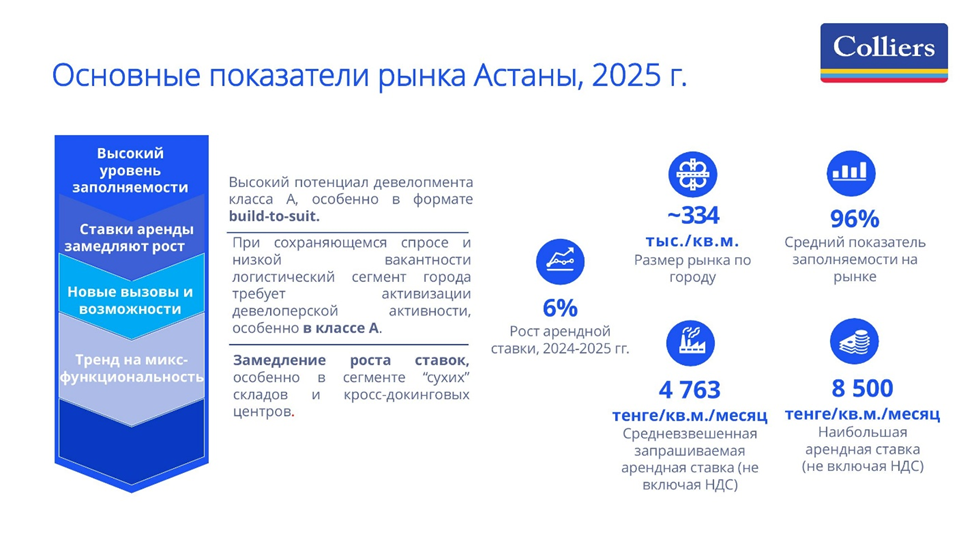 По данным Colliers Kazakhstan, складской рынок Астаны остается одним из наиболее дефицитных сегментов коммерческой недвижимости.